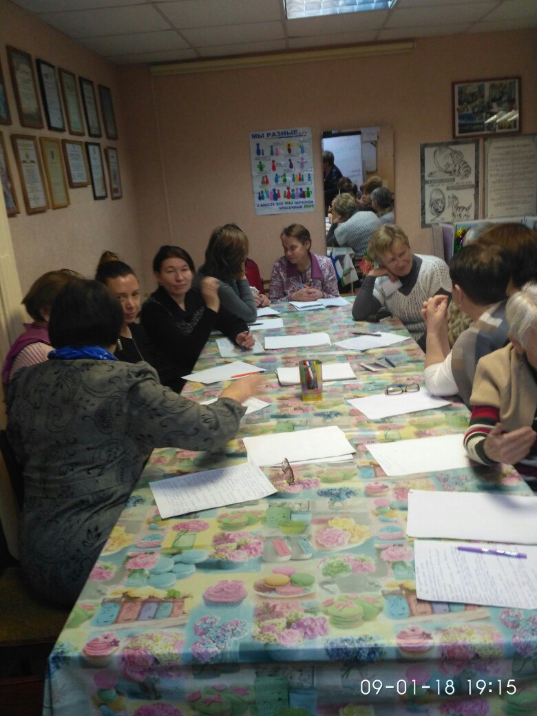 В конце мероприятия была предложена практическая часть. Слушатели разделились на 5 малых групп и обсуждали традиции, которые были в их родительских семьях, какие из них были утеряны, какие удалось сохранить, а какие вновь хотелось бы возродить или создать.