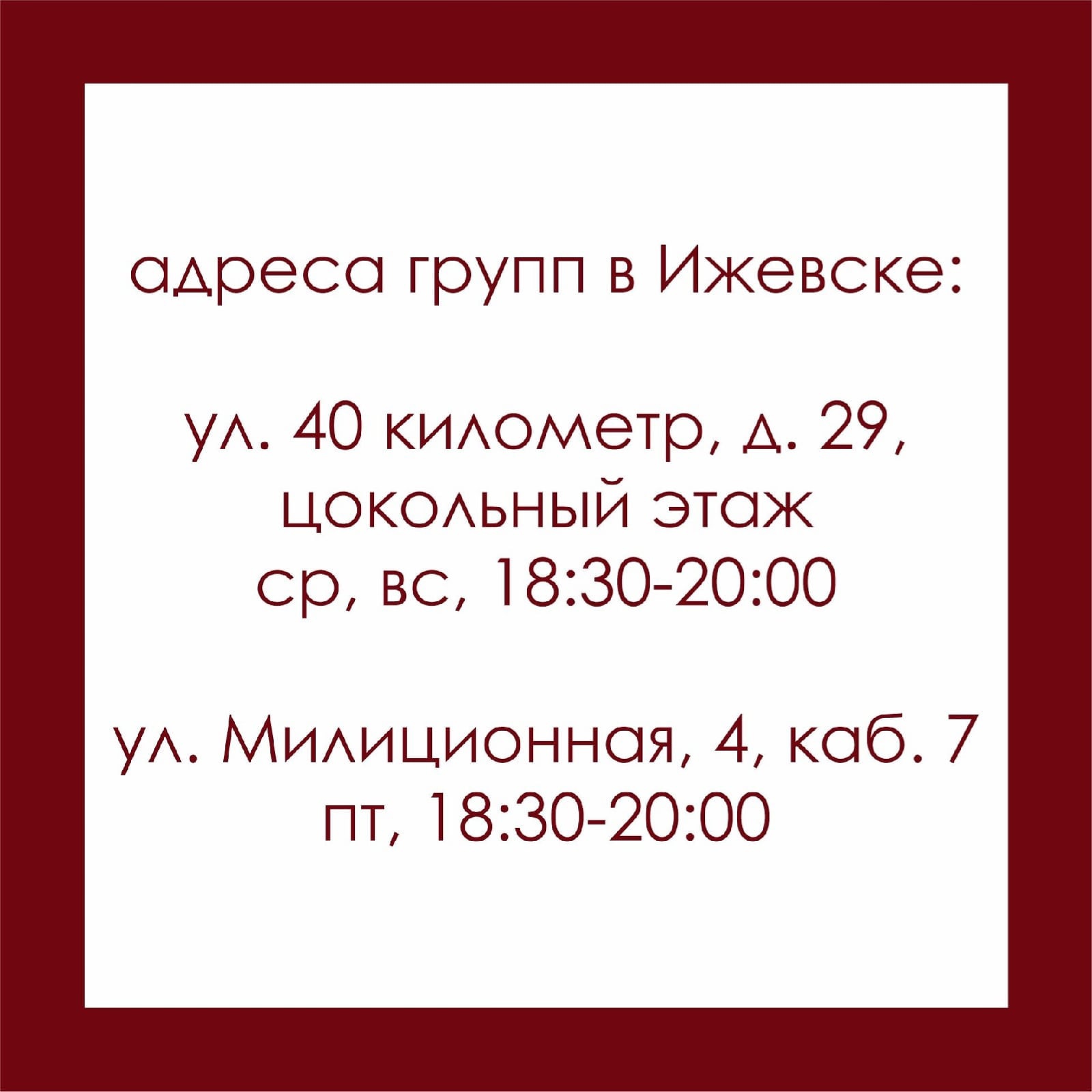 ?Напоминаем,что в офисе ОД г. Ижевска "За здоровое поколение" проходят группы ВДА, где желающие могут выздоравливать от последствий воспитания в дисфункциональной семье.