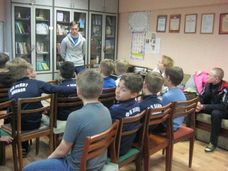 В офисе, ребята предложили гостям небольшой экскурс по помещению и показали самодельную игру БИЛЬБОКЕ, в которую все поиграли с большим интересом, затем подарили ее гостям. Далее тренер Митягин А. И. выступил и рассказал об уникальной школе, где спортсмены