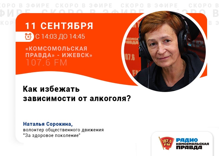 17 сентября на радио Комсомольская правда прошел эфир с участием волонтера ОД"За здоровое поколение" Наталья Сорокина и Светланой Потаповой - замначальником отдела Управления по контролю за оборотом наркотиков МВД по УР.Тема эфира: "Что...